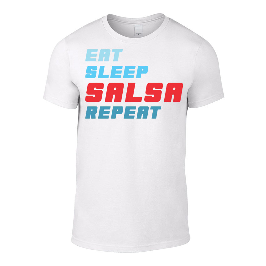 Presenting the Eat Sleep Salsa Repeat T-shirt – designed with 203gsm fabric, which provides for durability after many washes and limits any see-through effects, especially on our white tees. Created with a slim-fit structure and 100% ring spun cotton to reduces excess fabric and offer a soft feel all around.